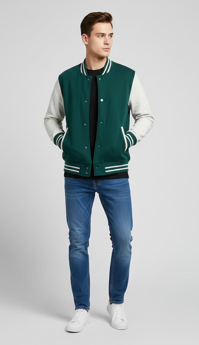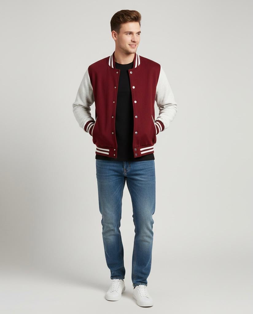 The jacket has two side pockets for your essentials and a clean varsity-style design that works with jeans, joggers, or casual outfits. It’s lightweight, stylish, and perfect for daily use, college wear, or evening hangouts.